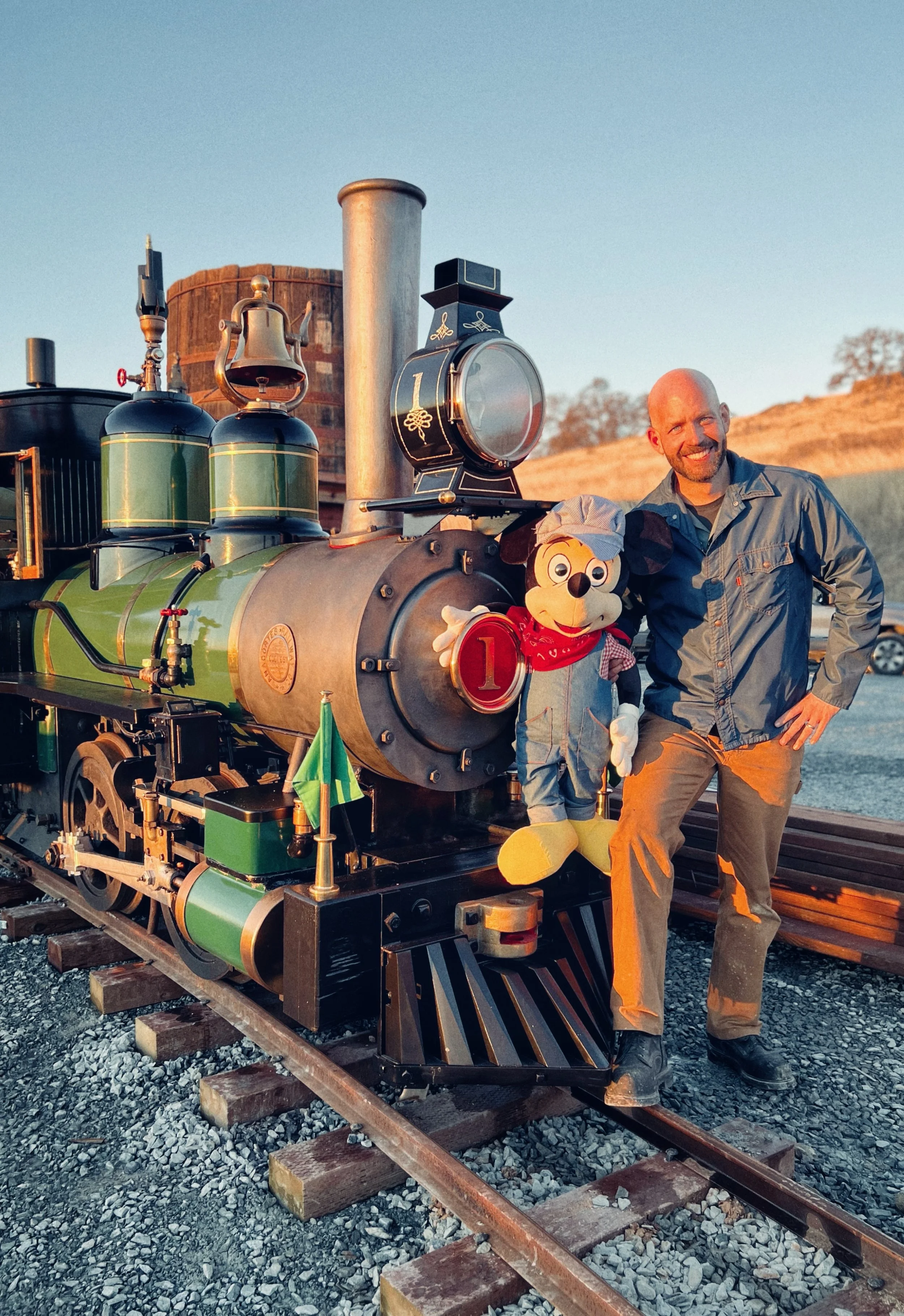 Bret Iwan by day is the official voice of Disney’s Mickey Mouse. After hours he’s an avid train fan with not just one, but two operating railroads. Along with his family’s half-scale replica of Disneyland’s Mine Train through Nature’s Wonderland, Bret loves operating his wood-burning steam locomotive on the 18" gauge Terbeau Ranch & Thompson Railway.